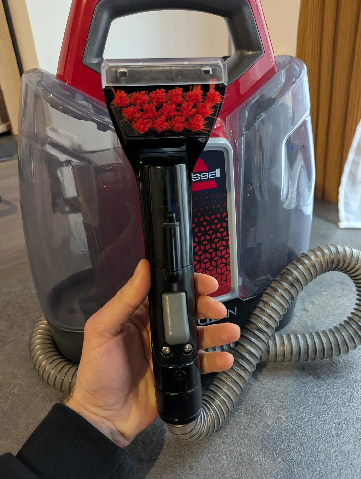- Bissell SpotClean (Portable) : Idéal pour une tache sur un canapé, un fauteuil ou des sièges de voiture. Léger, maniable, mais petit réservoir.