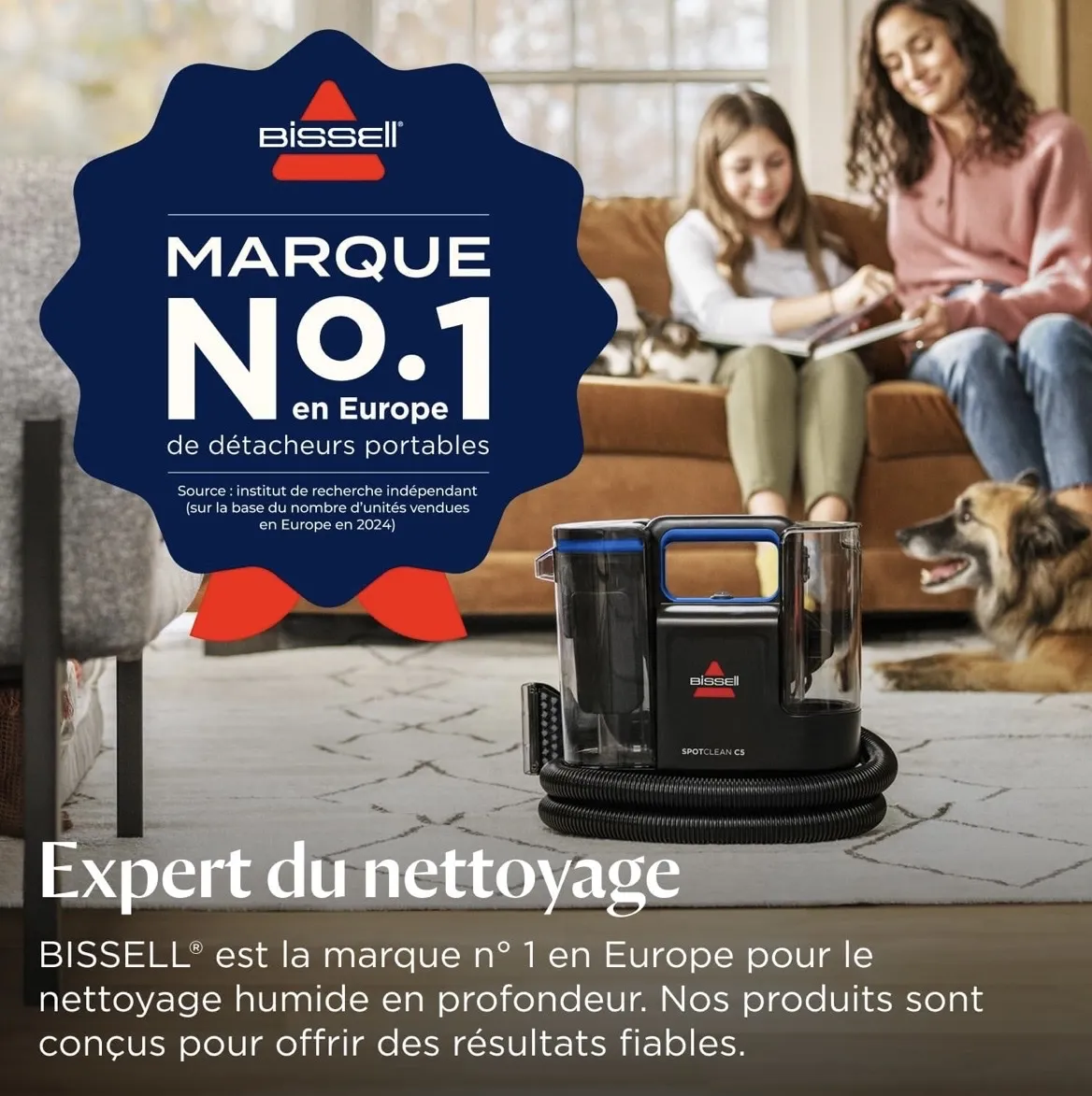 L'aspirateur ne suffit pas. Pour éliminer les taches, les acariens et les odeurs incrustées, il faut une shampouineuse (ou injecteur-extracteur). Elle injecte de l'eau savonneuse au cœur de la fibre et l'aspire instantanément avec la saleté. Résultat : des couleurs éclatantes et une hygiène parfaite.